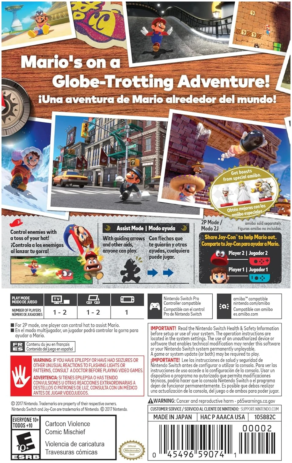 Viaja por reinos llenos de maravillas en Super Mario Odyssey. Utiliza la gorra de Mario para capturar objetos y enemigos y resolver acertijos ingeniosos.